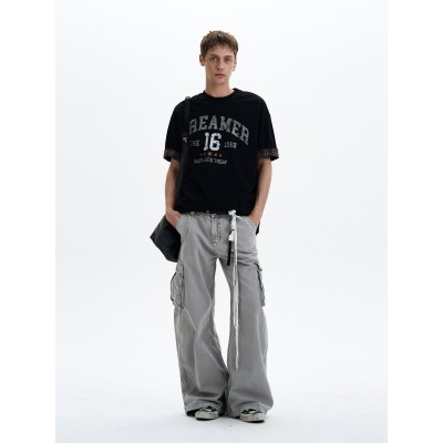 American retro distressed distressed design floor length jeans, niche high street loose and versatile wide leg pants