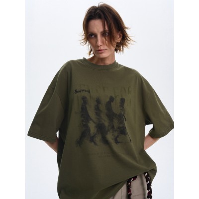 Vintage high street vintage washed printed T-shirt for men and women, loose and stylish vintage design, short sleeved
