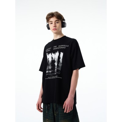 New High Street Reflection Character Gothic Letter Printed Short sleeved T-shirt for Men and Women, Versatile Top